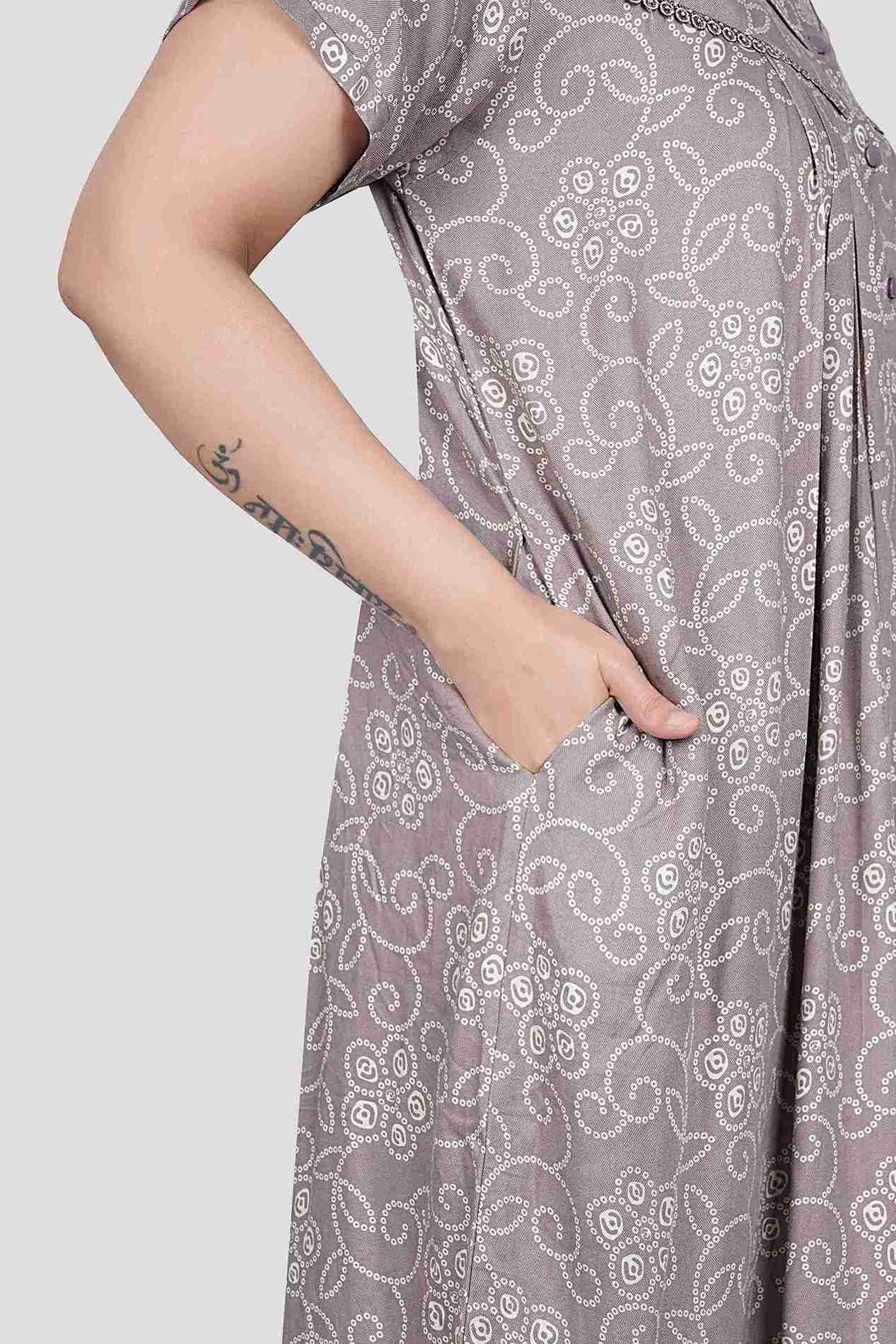 Chic Pleated Rayon Nighty with Beautiful Embroidery