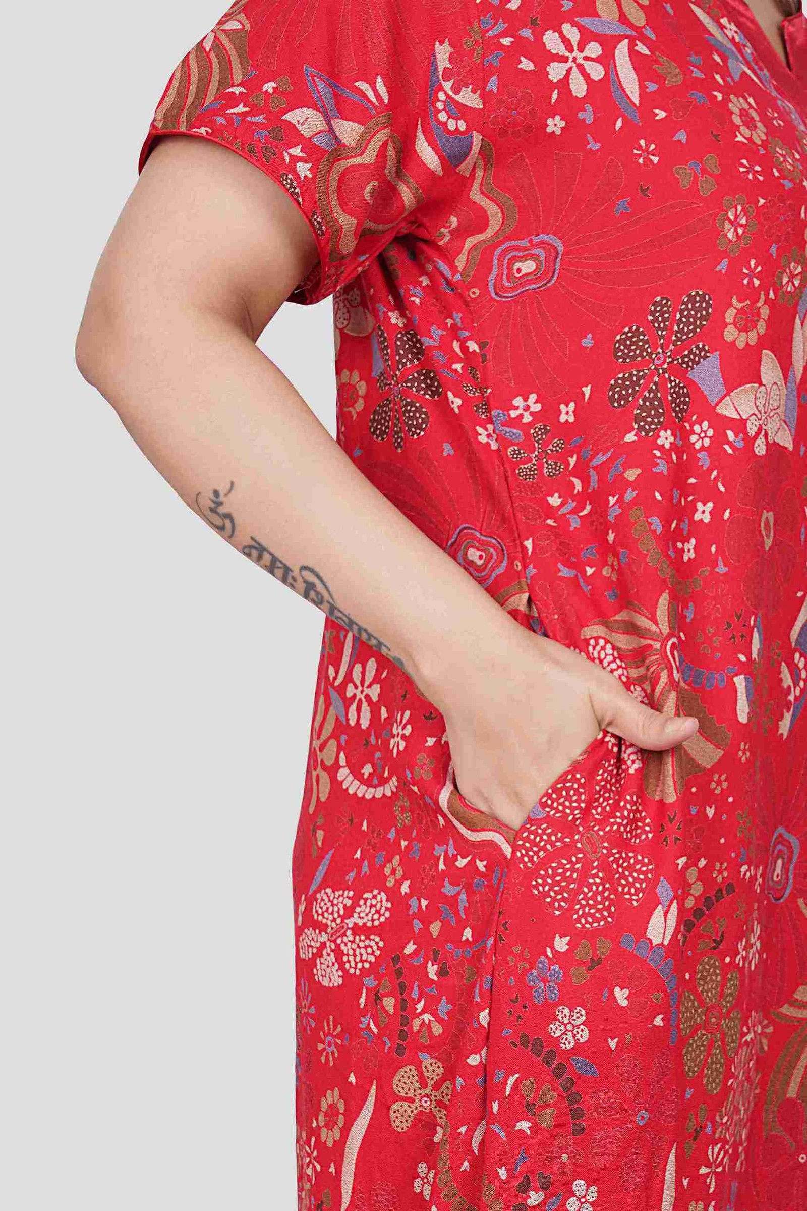Features: Tropical Print | Button Neck | Pocket on the right side | “A” Line pattern | Luxurious Softness