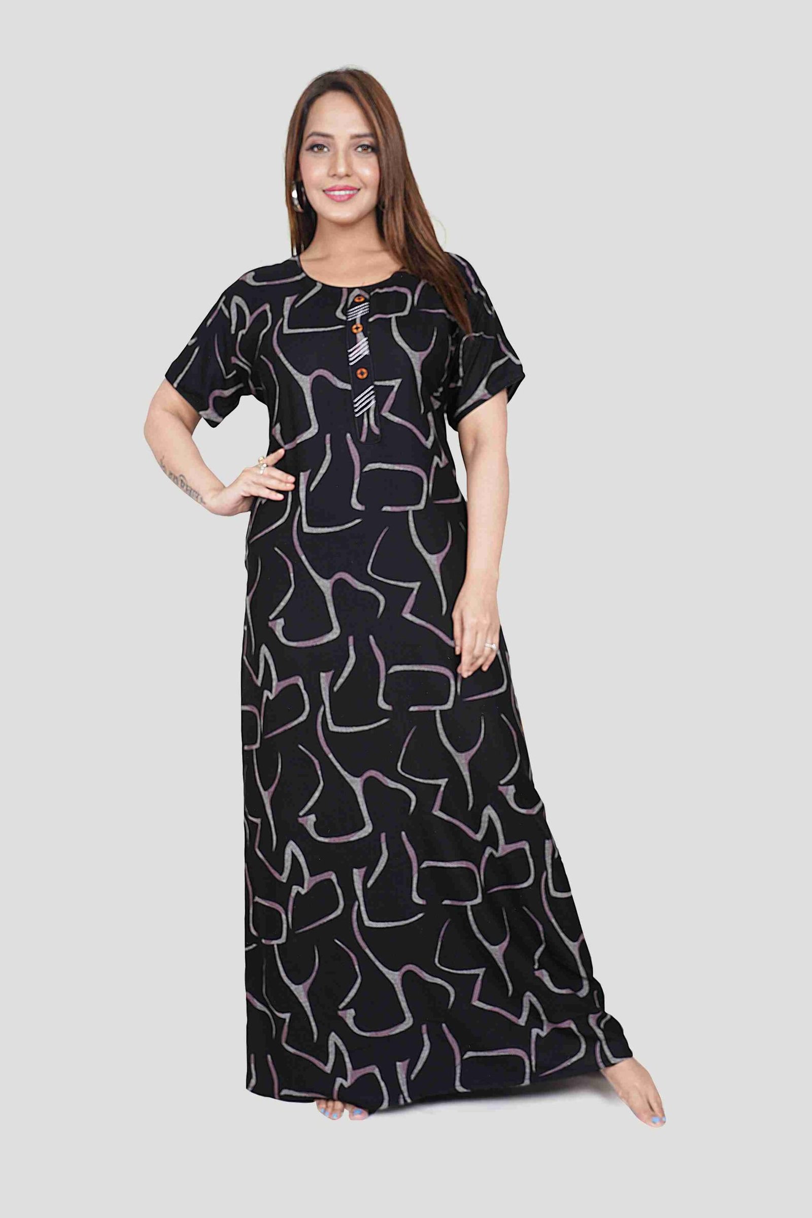 Indulge in the elegance of our nighty, crafted from premium alpine fabric known for its smooth texture, stunning luster, and natural sheen. Adorned with a tropical print and a chic buttoned neck, it features a convenient right-side pocket and a flattering “A” line silhouette. Ideal for loungewear, sleepwear, or special occasions, this nighty is designed for lasting beauty and effortless care, retaining its grace through every wash. Be sure to check our size chart to find your perfect fit.